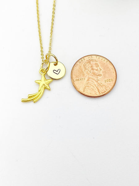 This is a gold -tone Shooting Star charm on brass/stainless steel 18 inches chain.