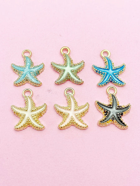 ♥ Starfish Charm, Alloy Enamel Pendants, Lead & Nickel Safe, Size about: 14.5mm wide, 18mm long, 3mm thick,