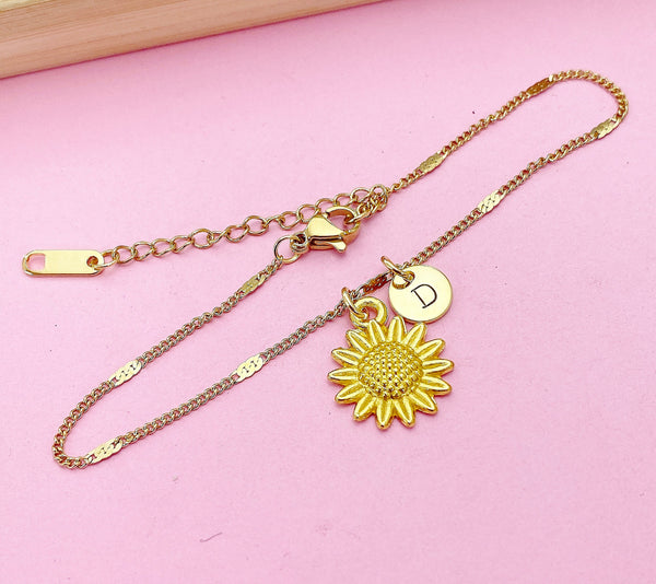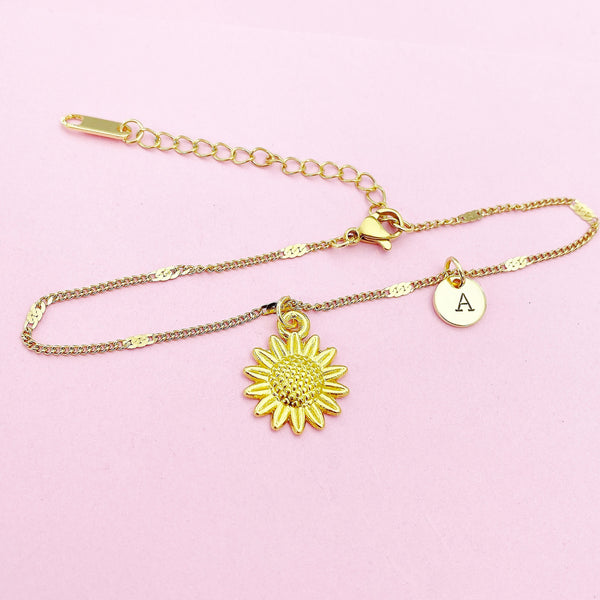 Gold Sunflower Charm Bracelet Wedding Bridesmaid Mother's Day Gifts Ideas Personalized Customized Made to Order, N3126
