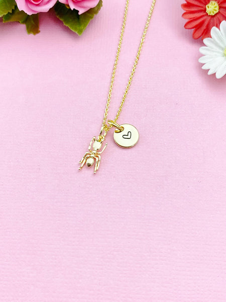 This is gold tone ant charm with hand stamped initial charm on brass/stainless steel 18 inches chain.