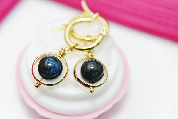 Gold Variscite Earrings, Natural Gemstone Jewelry