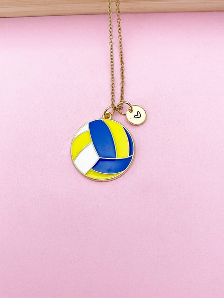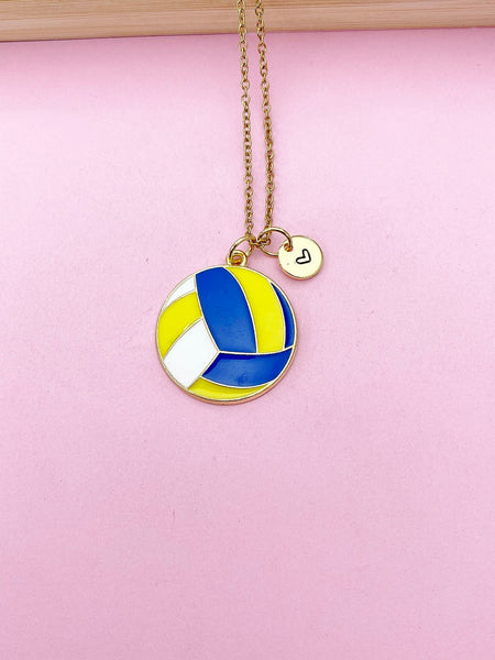 This is gold tone water polo charm with hand stamped initial charm on brass or stainless-steel chain.
