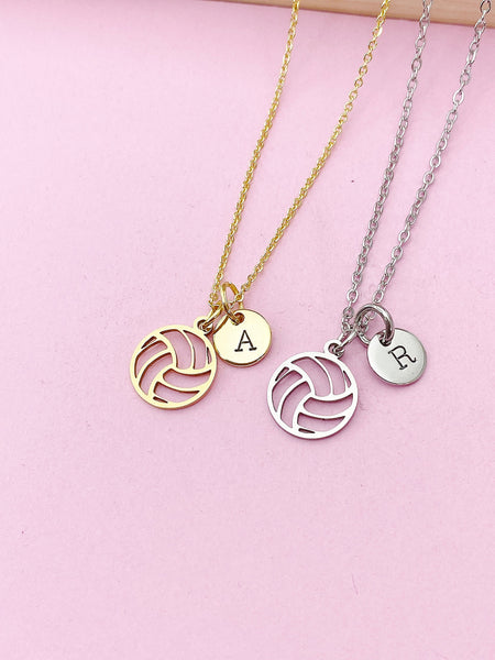 This is a gold -tone water polo charm with hand stamped initial charm on stainless steel 18 inches chain.