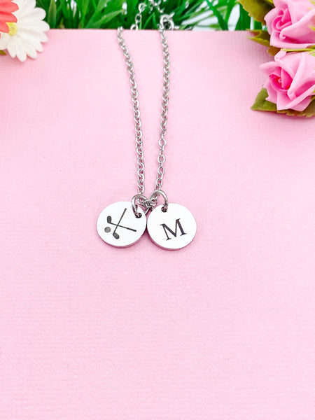 This is a unique engraving golf and initial charm on stainless steel 18 inches necklace chain.