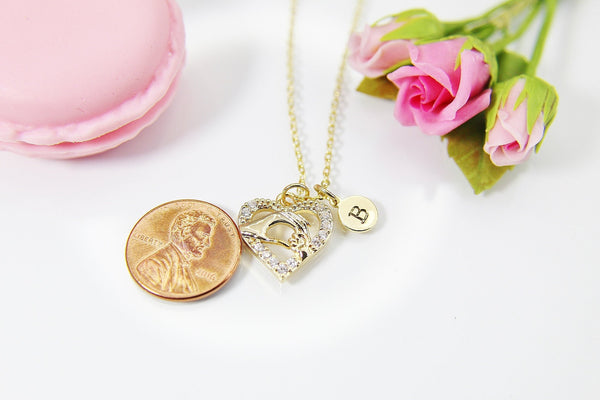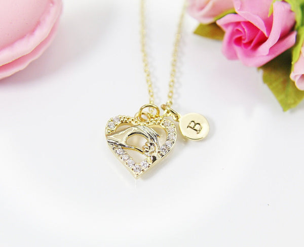 Heart Hand in Hand Mom Baby Necklace, Congratulations Pregnancy Gift, Baby Shower Gift, New Mom, Expectant Mother, Pregnant Friend,