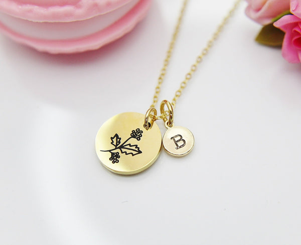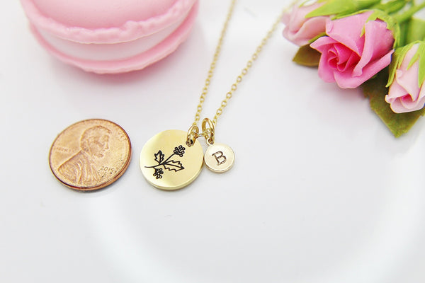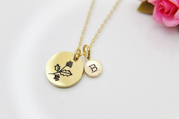 Holly Necklace, December Birth Flower Gift, Birthday Gift, Personalized, Christmas Gift, Appreciation Gift, Thank You Gift, N3836