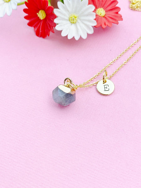 This is a gold tone Labradorite charm on brass or stainless-steel chain.