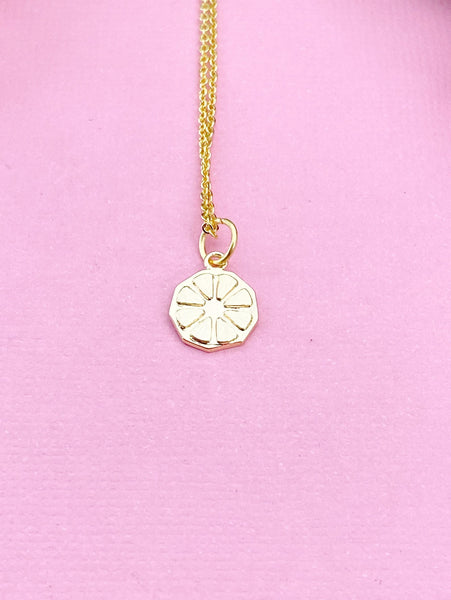 Lemon Necklace, Gold Lemon Slice Charm Necklace, Orange, N1434A