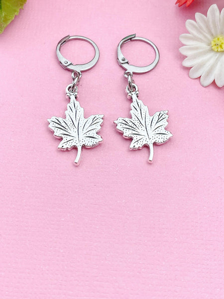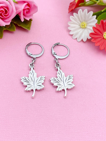 These are silver-toned maple leaf on stainless steel ear hooks.