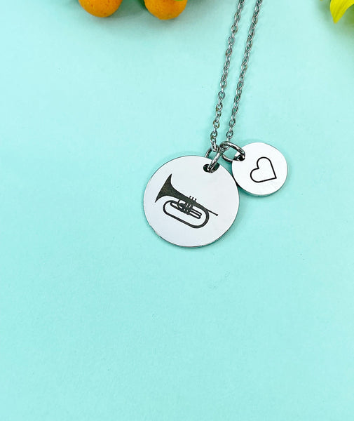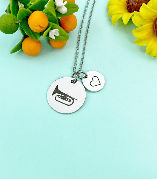This is a unique engraving Mellophone and initial charm on stainless steel 18 inches necklace chain