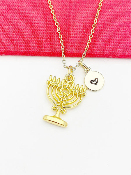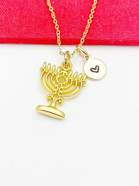 Menorah Necklace, Gold Candlestick Charm Peace Jewelry Gift