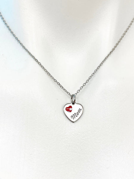 ♥ Mom, 304 Stainless Steel Enamel Charms, Heart with Word Mom, Size: about 13mm long, 12mm wide, 1mm thick