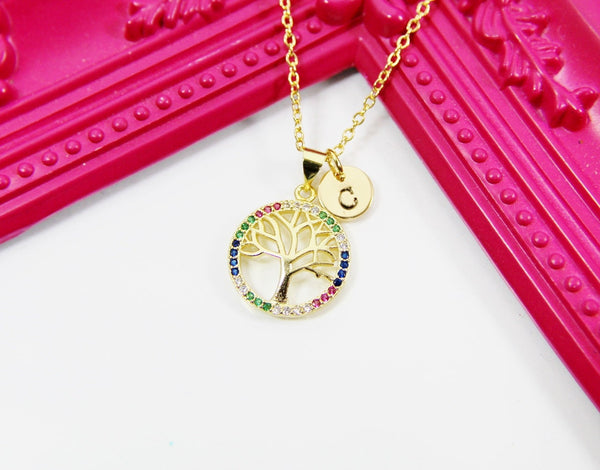Mom Necklace Gift, Gold Tree Necklace Gift, Mother Day's Necklace Gift, Mom Gift, Grandma Gift, Personalized Initial Necklace Gift