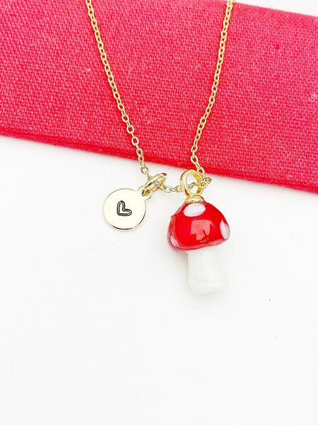 Mushroom Necklace, Red Mushroom Charm, Valentine Gift, Birthday Gift, Personized Initial Necklace,