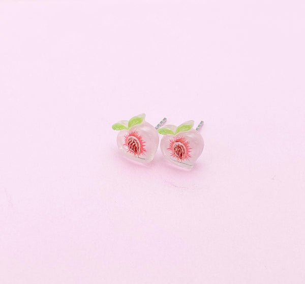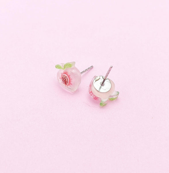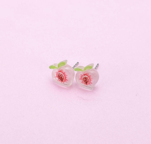 These are SMALL peach on Surgical Stainless Steel ear stud.