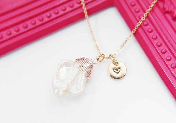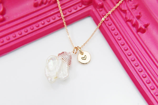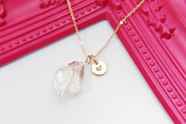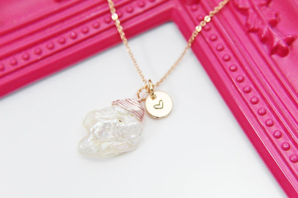 Rose Gold Natural Baroque Keshi Pearl Necklace, Birthday's Gift, Mother's Day Gift, Gemstone Jewelry, Birthstone, Personalized Gift,