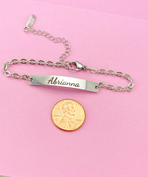 ♥ Name engraving on Tarnish Resistant 201 Stainless Steel, Rectangle, Stainless Steel Color, Size: about 0.24 inch(6mm) long, 1.59 inch(40.5mm) wide, 0.06 inch(1.5mm) thick,