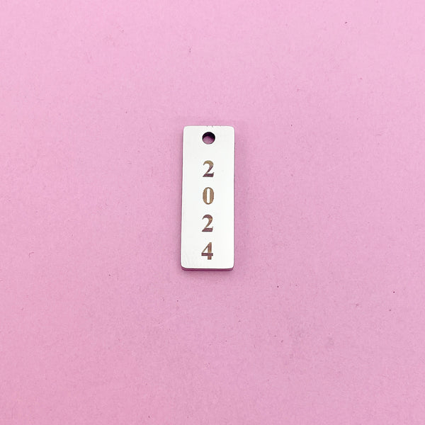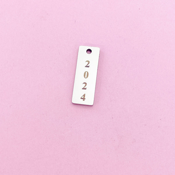 This listing offers custom engraving options for a date, year, short name, or other personalized text* on a stainless-steel pendant/charm. *Please contact the seller before placing your order.