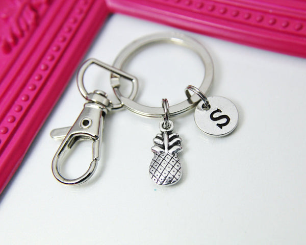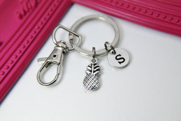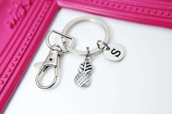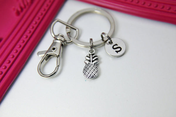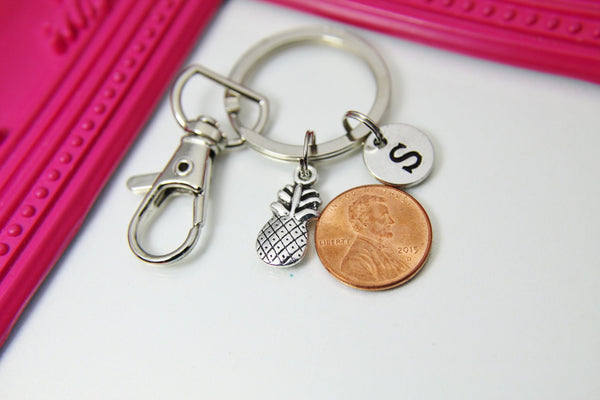 One Silver Pineapple Charm Keychain, Fruit Charm, Food Ananas Charm, Tropical Gift, Personalized Keychain, Initial Charm,