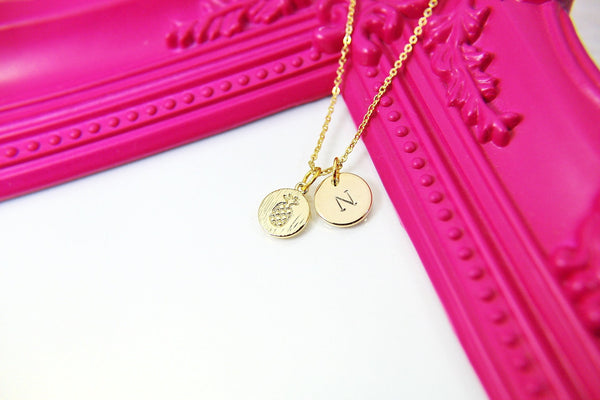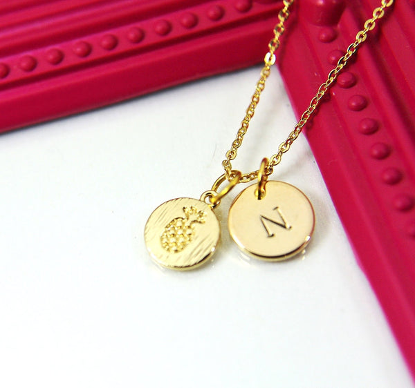 This is a beautiful Real Gold thick deep plated pineapple pendant with hand stamp initial charm on the 18K Real Gold Deep/thick Plated 17.7" necklace chain,