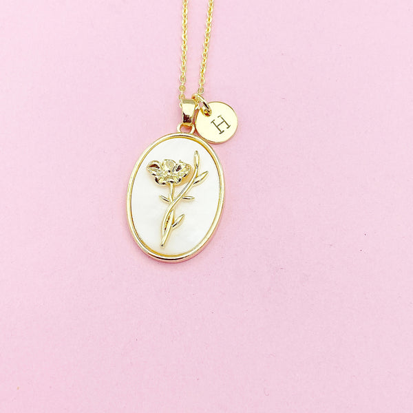 Poppy Flower Necklace August Birthday Gifts in Gold, N4883H