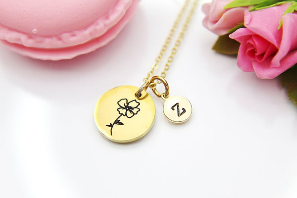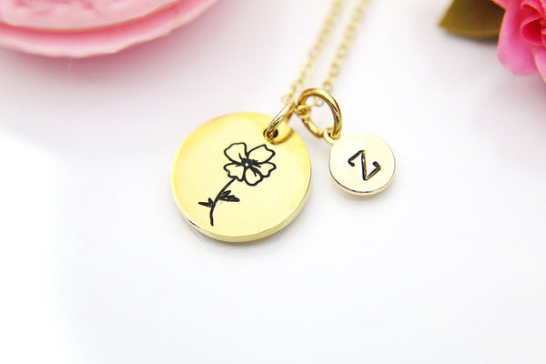 Poppy Necklace, August Birth Flower Gift, Birthday Gift, Personalized, Christmas Gift, Appreciation Gift, Thank You Gift, N3832