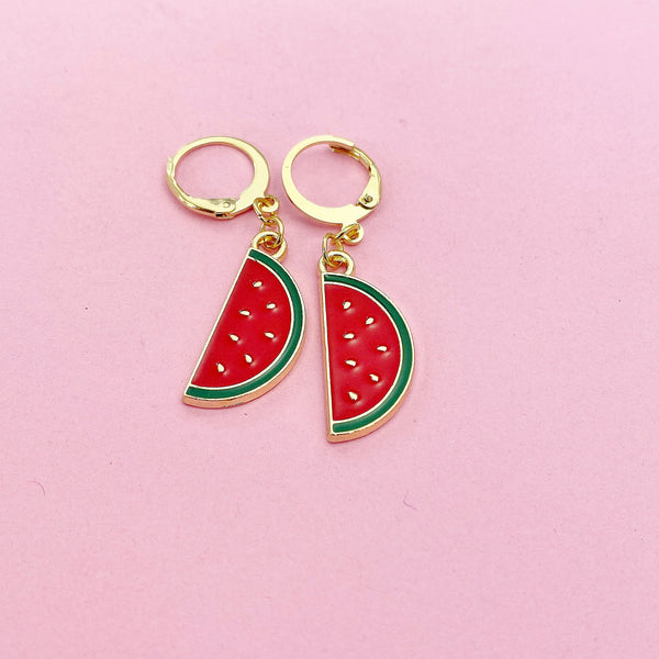♥ Watermelon Charm, Alloy Enamel Pendants, Red, Size: about 0.39 inch(10mm) wide, 0.89 inch(22.5mm) long, 0.04 inch(1mm) thick