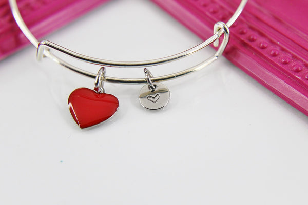 Red Heart Bracelet, Silver Hypoallergenic Bangle, Girlfriend Gift, Best Friend Gifts, Personalized Initial Gift, N4474