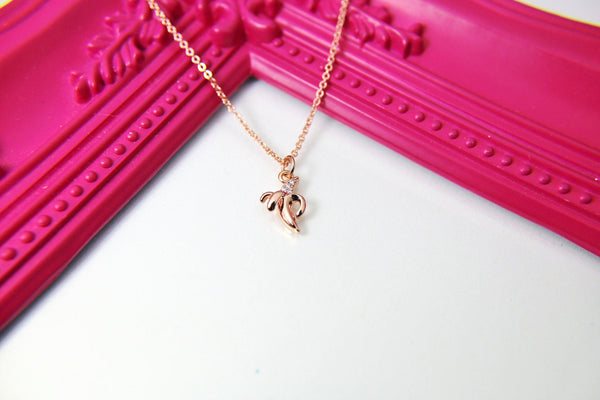 This is a beautiful brass micro grade AAA pave cubic zirconia banana pendant on the Real Rose Gold Thick plated 17.7" necklace chain.