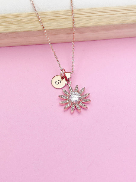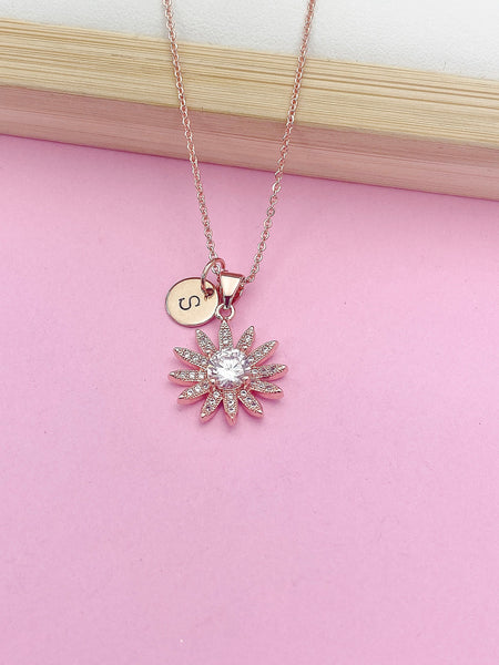 Rose Gold Daisy Flower Charm Necklace Bridesmaid Wedding Gift Ideas, Personalized Customized Made to Order Jewelry, AN5470