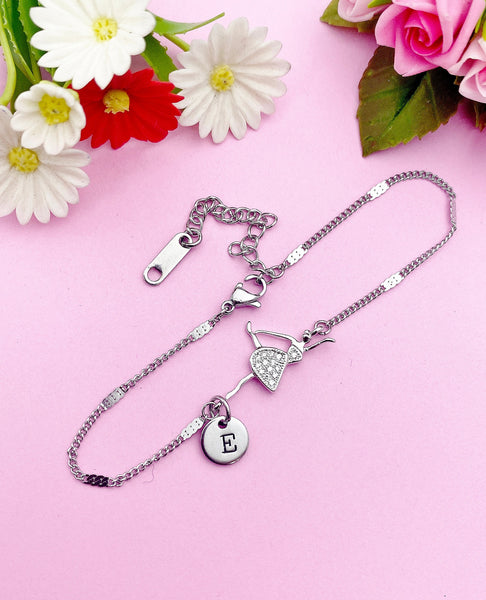 This is a silver gold rose gold-tone Grade AAA Pave Cubic Zirconia Ballet charm with hand stamped initial charm on stainless steel chain.