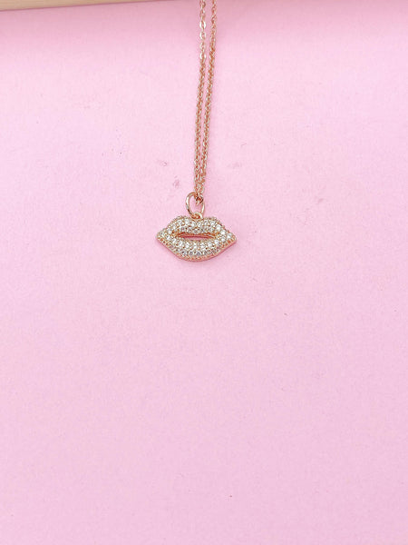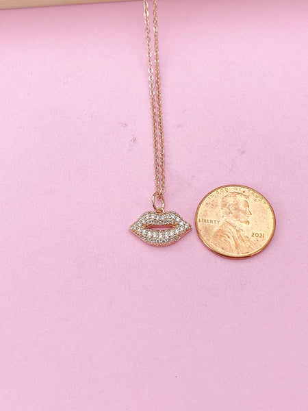 ♥ Lip, Brass Micro Pave Grade AAA Cubic Zirconia Charms, Long-Lasting Plated, Cadmium Free & Nickel Free & Lead-Free, Real Rose Gold Plated, Size: about 10x15x3mm