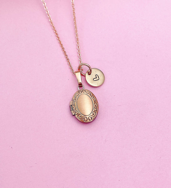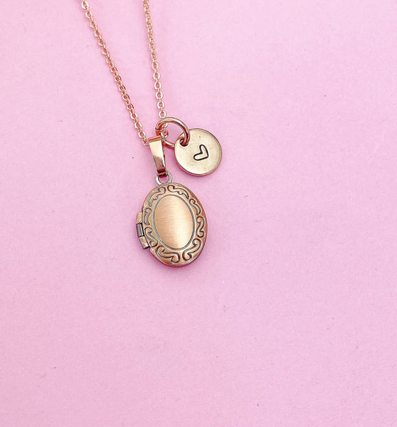 rose gold-tone TINY Locket charm with hand stamped initial charm on brass or stainless-steel chain. *TINY* Locket not for photo*