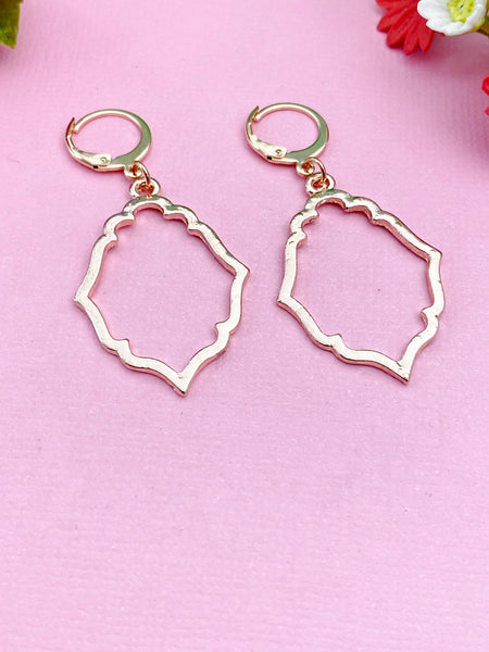 These are rose gold-toned Rhombus shaped charm on stainless steel ear hooks.