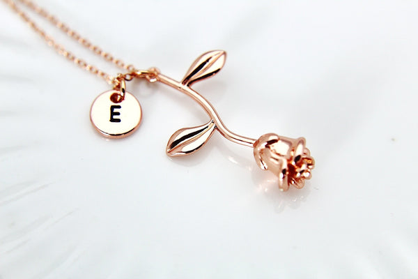This is beautiful real rose gold plated rose pendant with hand stamp initial or heart charm on the 18K Real Rose Gold Plated 17.7" chain,