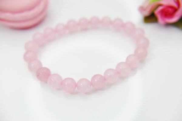 Rose Quartz Bracelet, Natural Rose Quartz Gemstone Jewelry