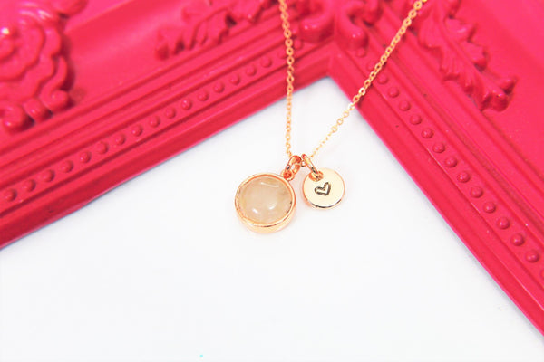 Gold Natural Rose Quartz Necklace, Natural Gemstone Jewelry