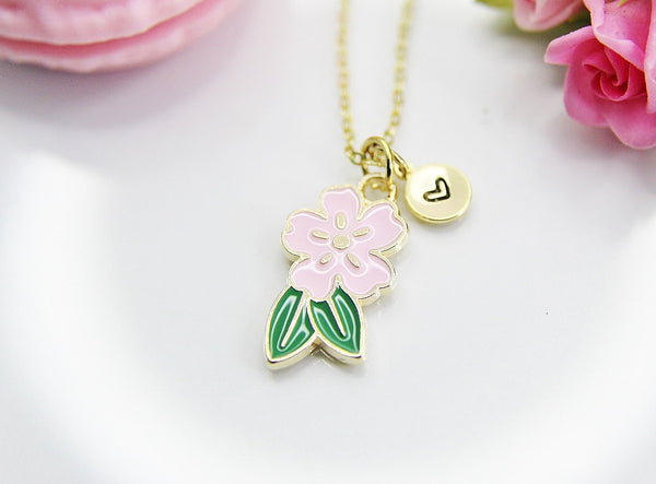 Sakura Necklace, Pink Flower Japanese Cherry Blossom Sweet Necklace Gifts, Best Birthday Gifts, Personalized Initial Gift