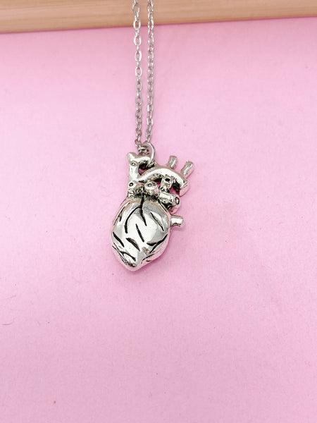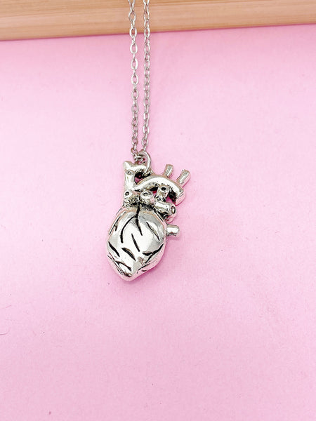 Silver Anatomical Heart Charm Necklace Doctor Nurse Medical School Student Gift Idea Personalized Customized Jewelry, AN4935