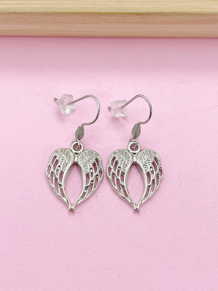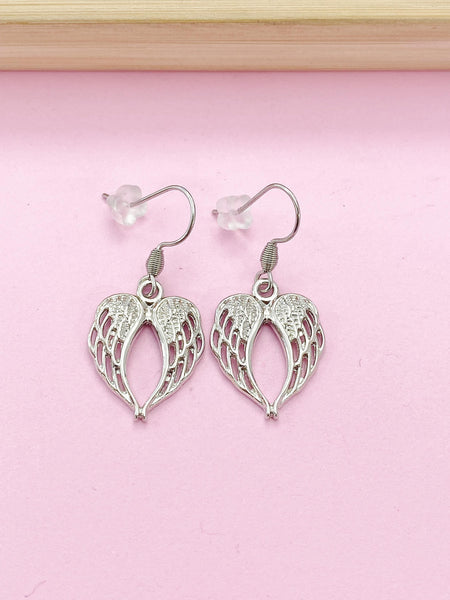 These are gold or silver-toned Angel Wing charm on stainless steel ear hooks.