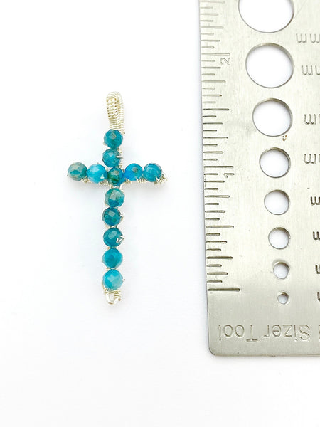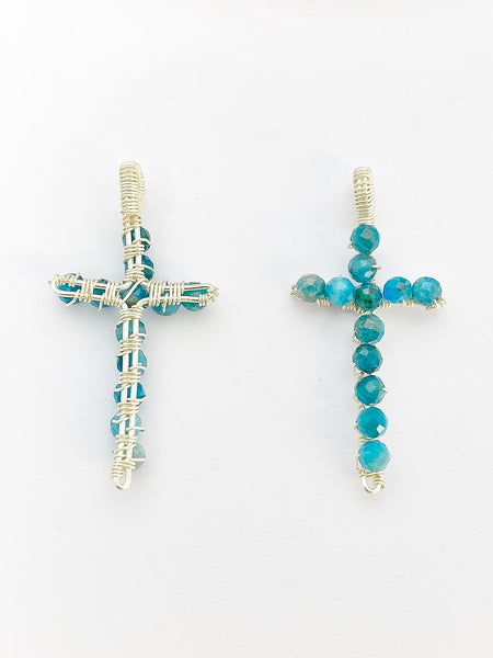This is a wire wrap silver -tone natural apatite cross charm with hand stamped initial charm on brass/stainless steel 18 inches chain.