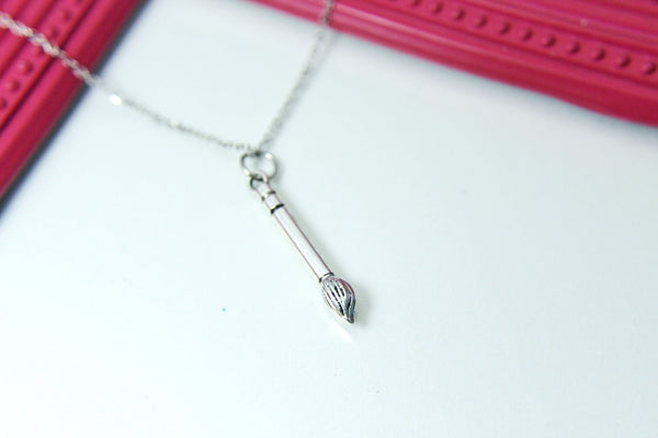 Silver Artist Paint Brush Charm Necklace, Paint Brush Charm, Chinese Calligraphy Brush Pen Charm, Art Teacher Gift,