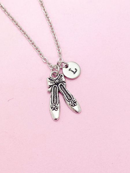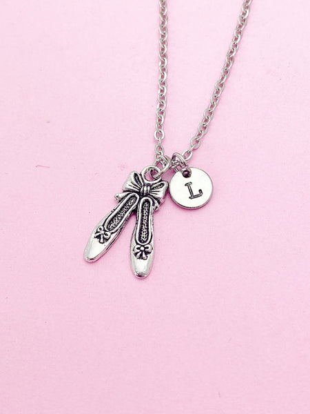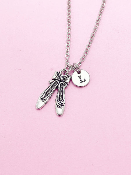 Silver Ballet Shoe Slipper Charm Necklace Ballet School Dancer Personalize Customize Gifts Ideas, N2233