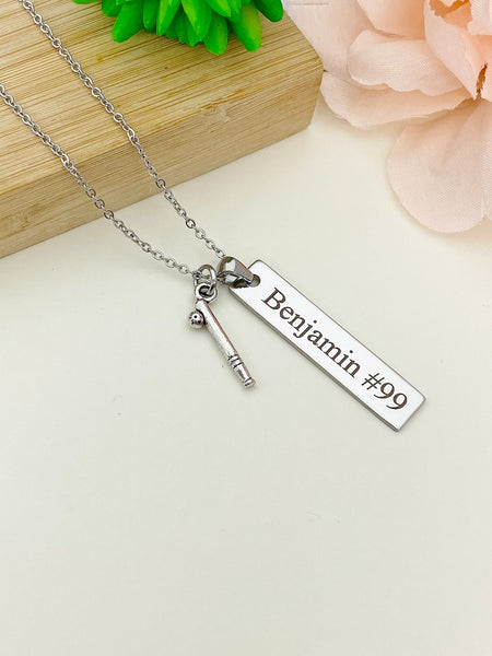 This is an engraving Name on stainless-steel and baseball charm with hand stamped initial charm on stainless steel necklace.