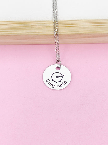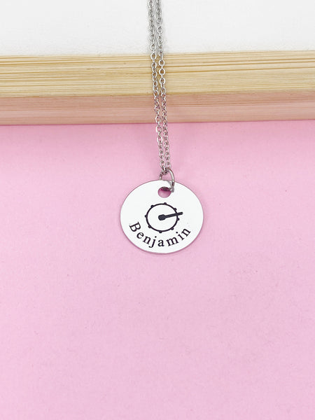 This is an engraving bass drum on aluminum tag charm on stainless steel necklace or key ring.