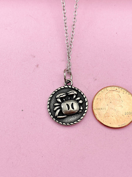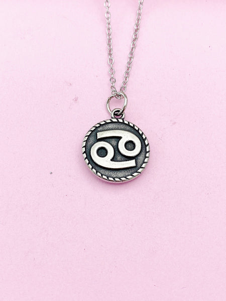 Silver Cancer Charm Necklace, Stainless Steel Cancer Pendant, N388