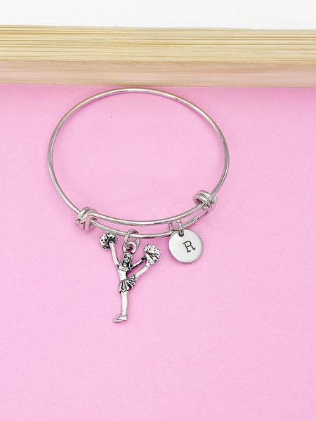 This is a silver-tone microphone charm with hand stamped initial charm on Tarnish Resistant stainless steel bracelet.