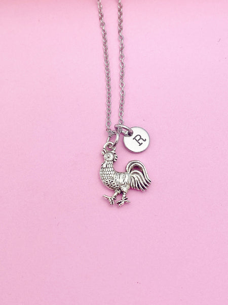 Silver Chicken Rooster Charm Necklace Farmer Chicken Pet Gifts Ideas Personalize Customize Charm Necklace, N782