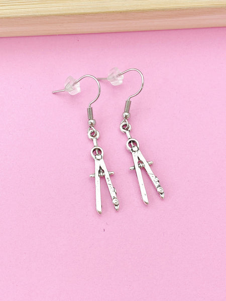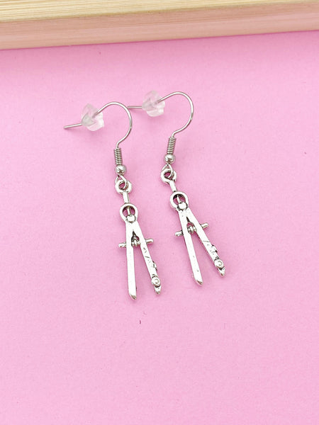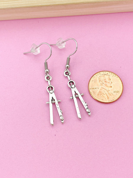 These are silver-toned compass on stainless steel ear hooks.