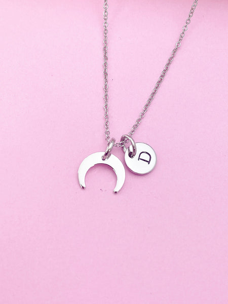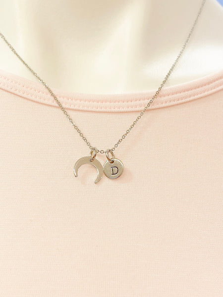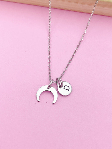 Silver Crescent Moon Charm Necklace Everyday Gift Ideas Personalized Customized Monogram Made to Order Jewelry, AN3859